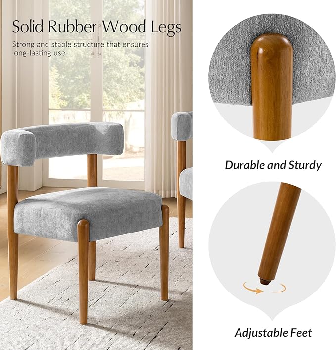 - Sturdy Solid Wood Legs: Built with solid wood legs in warm natural finish for lasting stability. The strong foundation ensures these dinner chairs remain secure and wobble-free during daily use.